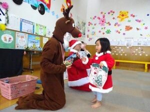 サンタのおじさんやトナカイさんからプレゼントをもらい、楽しいクリスマス会となりました![]()