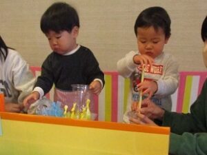 盛り上がって遊んだ「お店屋さんごっこ」。店員さんもお客さんもとっても上手で、楽しい声が部屋いっぱいに広がりました。