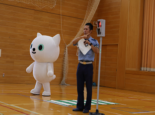 警察の方の挨拶の後、クロくんシロちゃんの登場!!