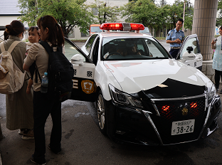 帰りに玄関外で、パトカーとトラックの乗車体験もできましたよ
