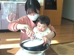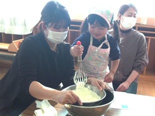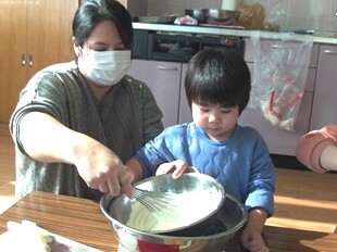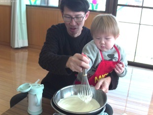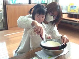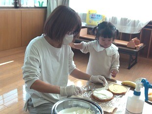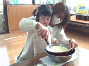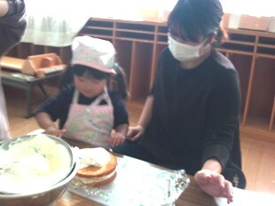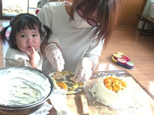 西部子育て支援センターでは11月27日(木)に「親子でクッキング」で『クリスマスケーキ』を作りました