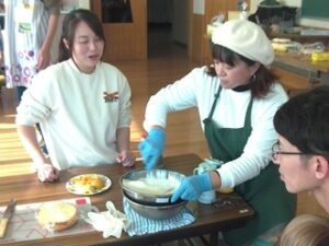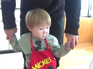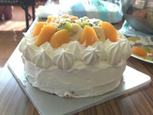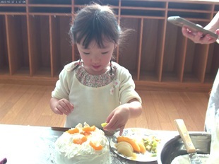 途中で、ホイップクリームをなめたり、果物をつまみ食いしたり、楽しんでいるこどもたちのすがたが見られました。