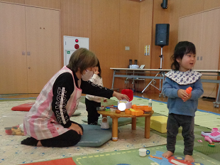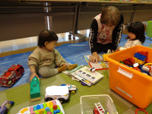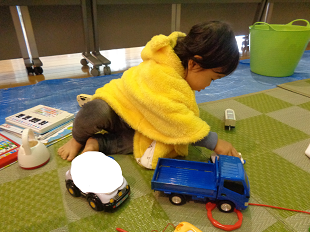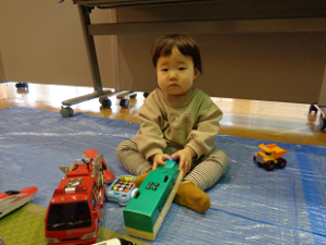 遊びに来てくれたお友達は、おままごとや働く車などのおもちゃで遊んでいましたよ。