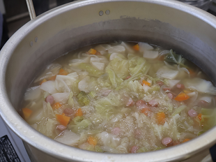 メニューは野菜たっぷりピラフ&ポトフ。