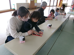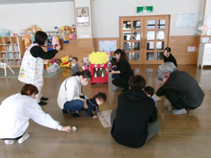 【南部】きらきらひろば①「節分ごっこ」 2026年2月6日 南部子育て支援センター イベント日記 みなさんこんにちは 2月3日は節分。みんなで豆入れを作り、豆まきをしました。 福の神の豆入れ かわいい豆入れが出来ました。 健やかな1年を願い、「鬼は~そと!福は~うち!」 良い1年になりそうです♬ 南部子育て支援センター 0182-24-3155