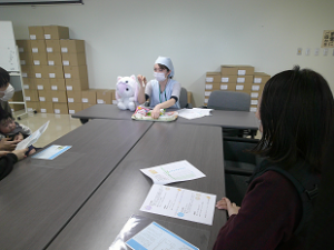 今回は「栄養士さんによる簡単離乳食づくり」 ということで、離乳食に関するお話を聞いたり、実際に離乳食を作ったりしました。