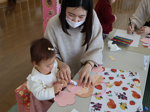 2/20(金)「ひなまつり製作」でつるし雛を作りました。