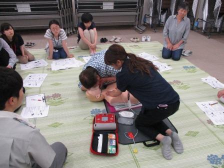 心肺蘇生のほかに、子どもがおもちゃなどの異物を飲み込んだときの対処法や、止血の仕方についても学びました。