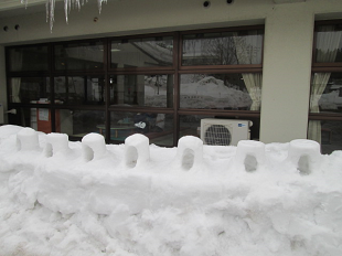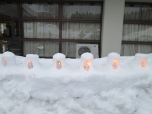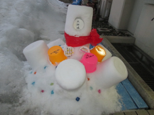 「大森子どもと老人のふれあいセンター」でも、ミニかまくらや雪のオブジェが、みなさんをお出迎えしています。