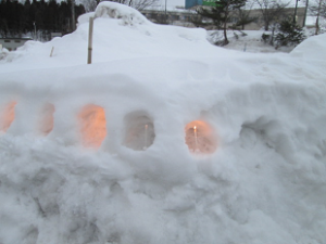 夕方には、かまくらに点灯し、一帯が幻想的に。。。